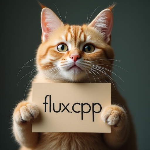 .\bin\Release\sd-cli.exe --diffusion-model ..\models\flux1-dev-q8_0.gguf --vae ...\models\ae.sft --clip_l ..\models\clip_l.safetensors --t5xxl ..\models\t5xxl_fp16.safetensors -p "a lovely cat holding a sign says 'flux.cpp'<lora:realism_lora_comfy_converted:1>" --cfg-scale 1.0 --sampling-method euler -v --lora-model-dir ../models --clip-on-cpu